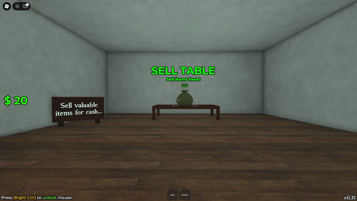Function: This is where you sell your loot! Drop sellable items onto the pads on the tables. They'll turn into money bags based on their value. Hold 'E' to collect the cash. Items tagged as "valuable" are worth more. Non-valuable items usually sell for $5 max.