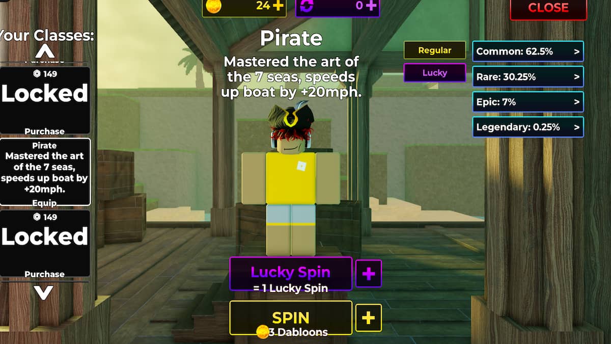Spend Your Currency: Interact with it. You'll have the option to spend either Dabloons or Lucky Spins to roll for a random class.